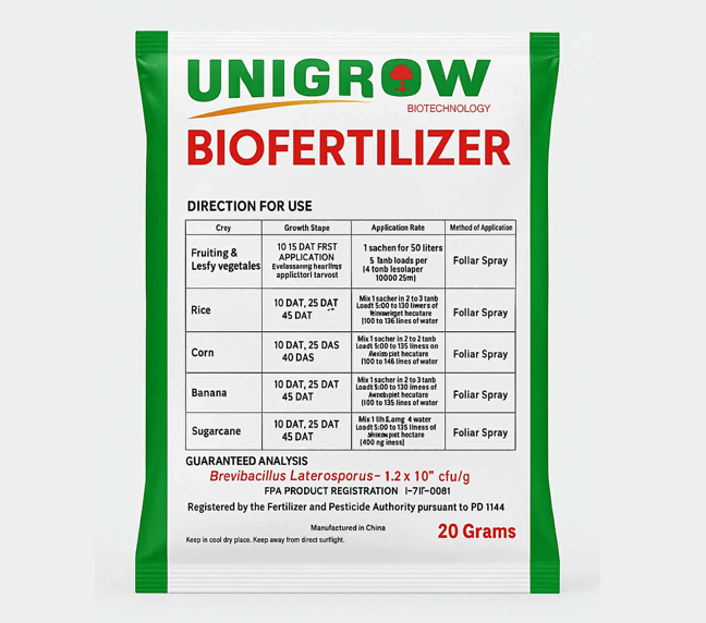 UNIGROW Biofertilizer is an advanced agricultural input formulated with beneficial microorganisms that enhance soil fertility, stimulate root development, and improve the natural nutrient absorption of crops. These microorganisms help restore soil balance, allowing plants to grow healthier and more resilient while reducing dependence on synthetic chemical fertilizers.